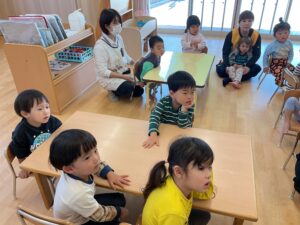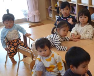 2歳児クラスが看護師による「手洗い、うがい指導」に参加しました。