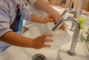 歌の歌詞の通り、ゆっくりと丁寧に手を洗っていました。