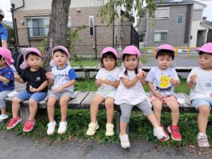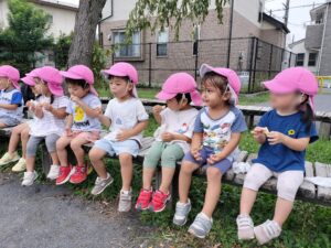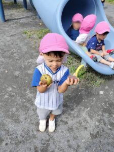 帰りは給食の先生にもらった秘密のお菓子を食べ、ニコニコなうさぎ組さんでした!