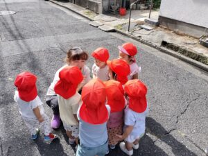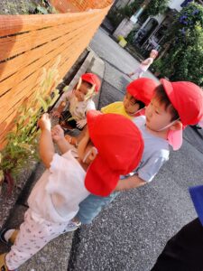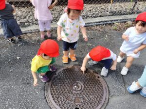 マンホールに溜まった水を触ってみたり、ねこじゃらしの収穫をしてみたり…