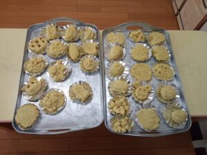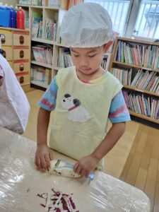 その後、卵や砂糖、生クリームを加え、それぞれに、自分で形を整えました。