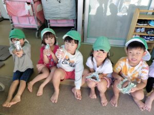 きりんさんが掘ってきてくれたさつま芋を、幼児組の子ども達が、