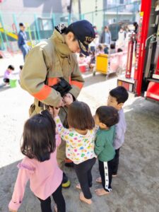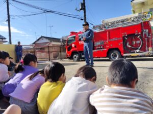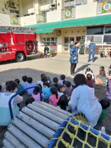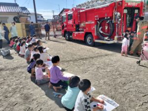 熊川保育園にみんなの大好きなカッコイイ消防車と消防士さんが来てくれました。