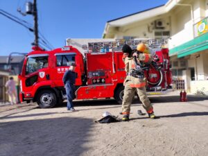 その後、安全な避難の方法などを消防士さんから教えてもらいました。