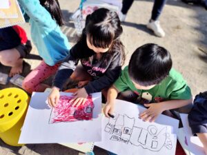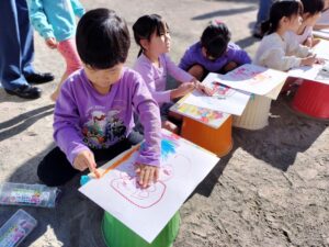 みんな大好きな消防車、真剣な表情で絵を描いている姿が印象的でした。