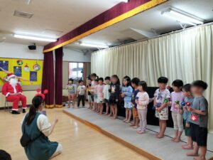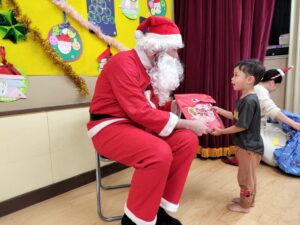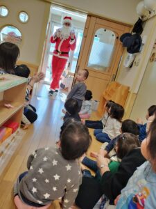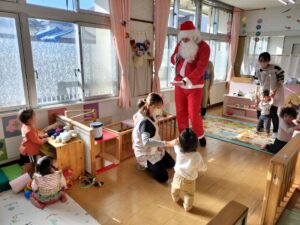 そして待ちに待ったサンタさん登場!子ども達、一人ひとりにプレゼントを手渡ししてくれました。