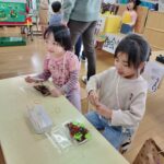 作ったものをその場でパックに詰めて渡したり、体験コーナーで遊んだり、