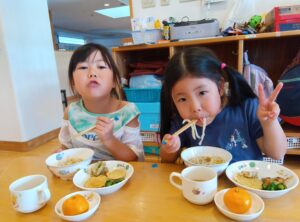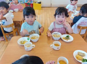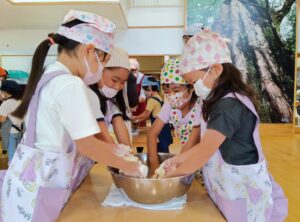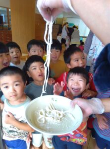 そして給食の時間。モチモチの手打ちうどんは格別で、「美味しい~!」「めっちゃ最高」!!」とよく食べ、おかわりをしていました。