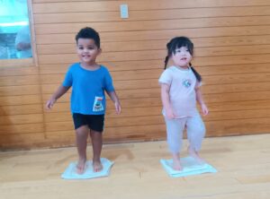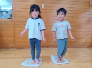 「あれ?重たくなってきた」「粘土みたい!」「気持ちいい~」と感じたことを表現していた子ども達です。