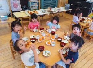 自分で作ったハンバーガーは嬉しかったようで「おいしい!!」と大喜びでした。